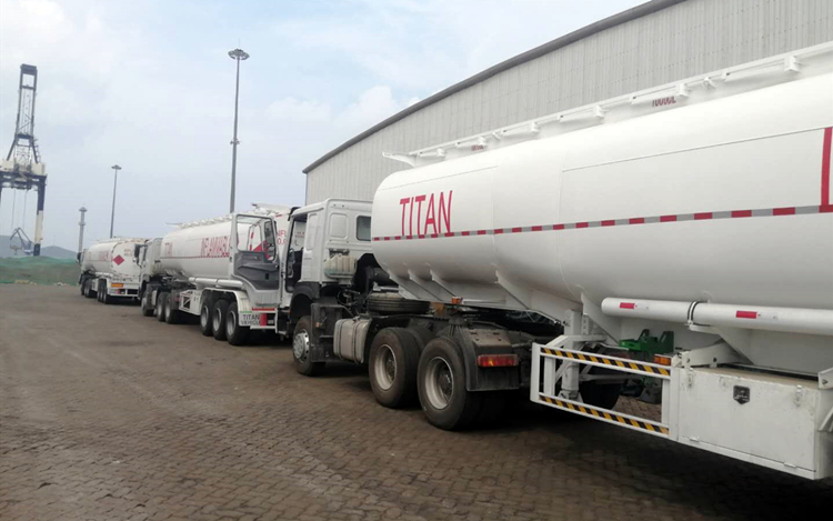 Fuel tanker trailers are ready for shipment at the port