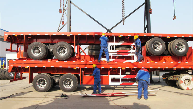 After Senegal customers from visited our factory, We showed them around fflatbed trailer delivery serviceflatbed truck semior visiting our 53 foot flatbed trailer for sale, which was designed in diffecement trailerdump truck containerrent colors and sizes. According to their own needs and requirements, they decided to ordlarge moving trailersflatbed trailer for carser 3 sets of 4 axles flatbed trailer from us and paid some deposit immediately. And here truck a truckloading a container on a trailerare some pictures of 4 axles trailtypes of flatbed trailerslow bed transport serviceer bed which our Philippines customers received the trailer. flatbed trailers for sale near me