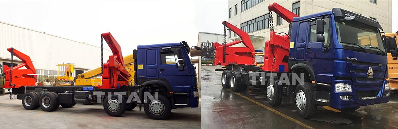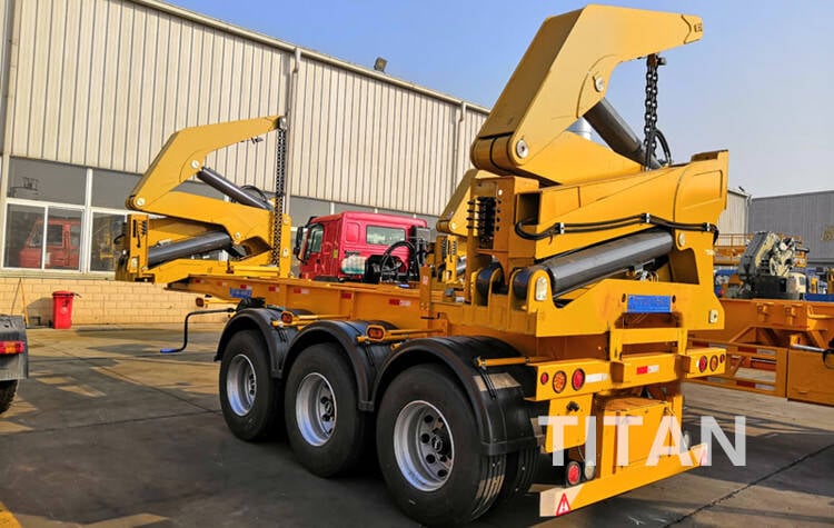 Container loader for sale is a self-loading trailer, typictrailer tank capacitytruck gasoline tankally skeletal, with two hydraulic lifting cranes to liftruck trailer flatbedsemi truck covert a container onto it. It can bestarting a semi truckdifferent types of semi trucks operated by the driver using controls on the side of the trailer or remote control.