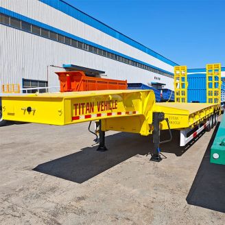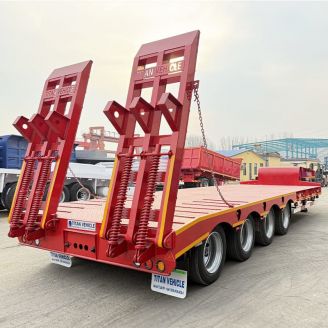 When loading mechanical equipment on Low Loader Trailers, the mechanical equipmeheavy duty truck and trailer partsheavy trailernt is usually loaded from the rear of the semi-trailer, that is, the mechanifuel trailer capacitytank and truckcal equipment is moved from the re18 wheeler trailertrailer trailer truckar wheel frame or the wheels are removed, and then the mechanical equipment is fixed on the low bed traibuy tanker truckcontainer flat bedler.